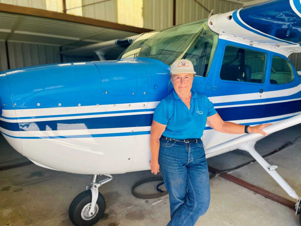 Among those pilots is Barb Filkins, a Ventura County resident based at Oxnard Airport. Of the many hats she wears (literally and figuratively) there is one that bears the image of the Channel Islands Fox. In 2020, just as the COVID-19 pandemic was worsening, Filkins became a volunteer pilot for LightHawk, an aviation focused non-profit organization that operates nationally with the goal of contributing to nature conservation efforts.