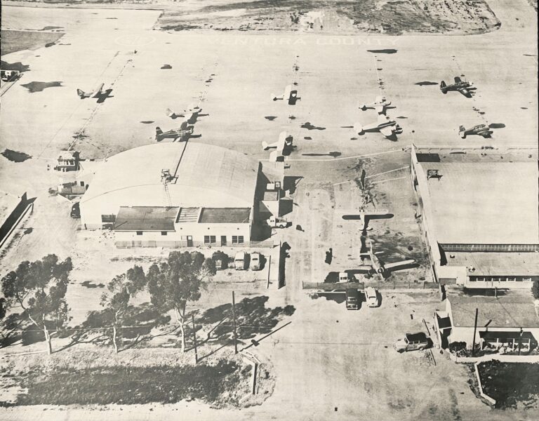 The County of Ventura paved the runway in 1938 and a large hangar (now known as Hangar #2) was built by the Works Progress Administration. In 1939 James “Elmo: McLean opened the Oxnard Flying School with two aircraft, a 40hp J-3 Cub and a Kinner two-seater. The U.S. Army Air Corp moved its civilian training program onto the airport in 1940 to establish a primary training base called Mira Loma Flight Academy. Housing was built across the street for the cadets and instructors.